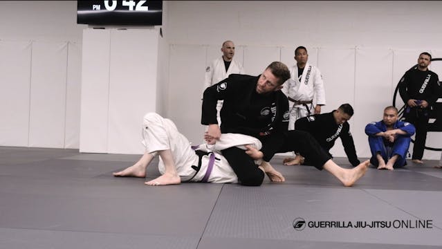 When attempting to perform the sleeve drag, some may recognize and avoid it by locking their elbow down into your hip. When this happens Matt Darcy put a foot on the hip ramping his hips up which also lifts that arm. When he then attempts the pendulum sweep that downward force they are applying ...