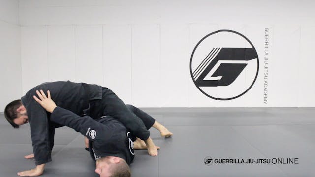 Matt Darcy shows the second move in his knee on belly escape system. He goes to this move when he can't make space for the knee in the first move because his opponent is sitting their weight back toward their heel while in knee on belly.